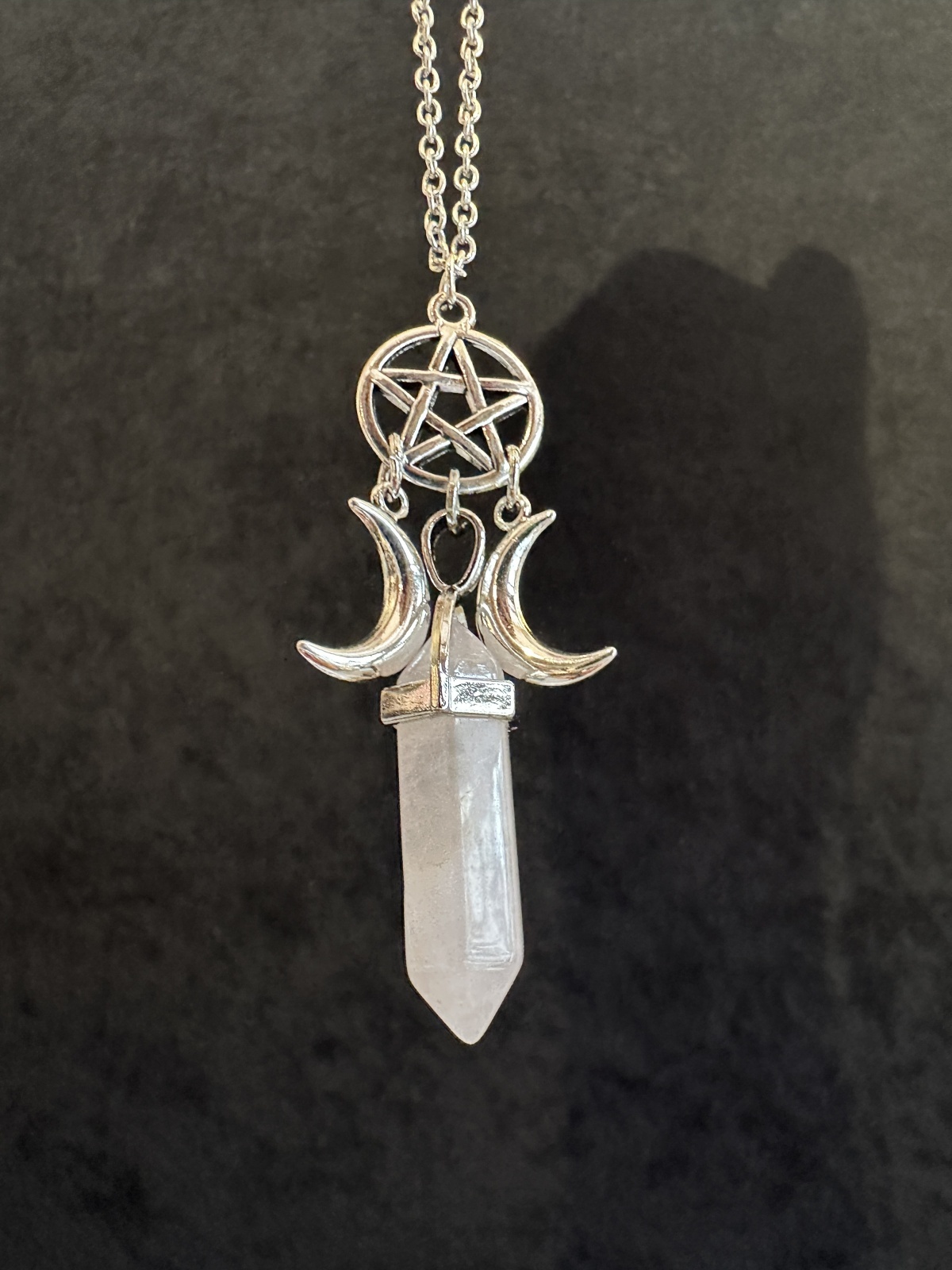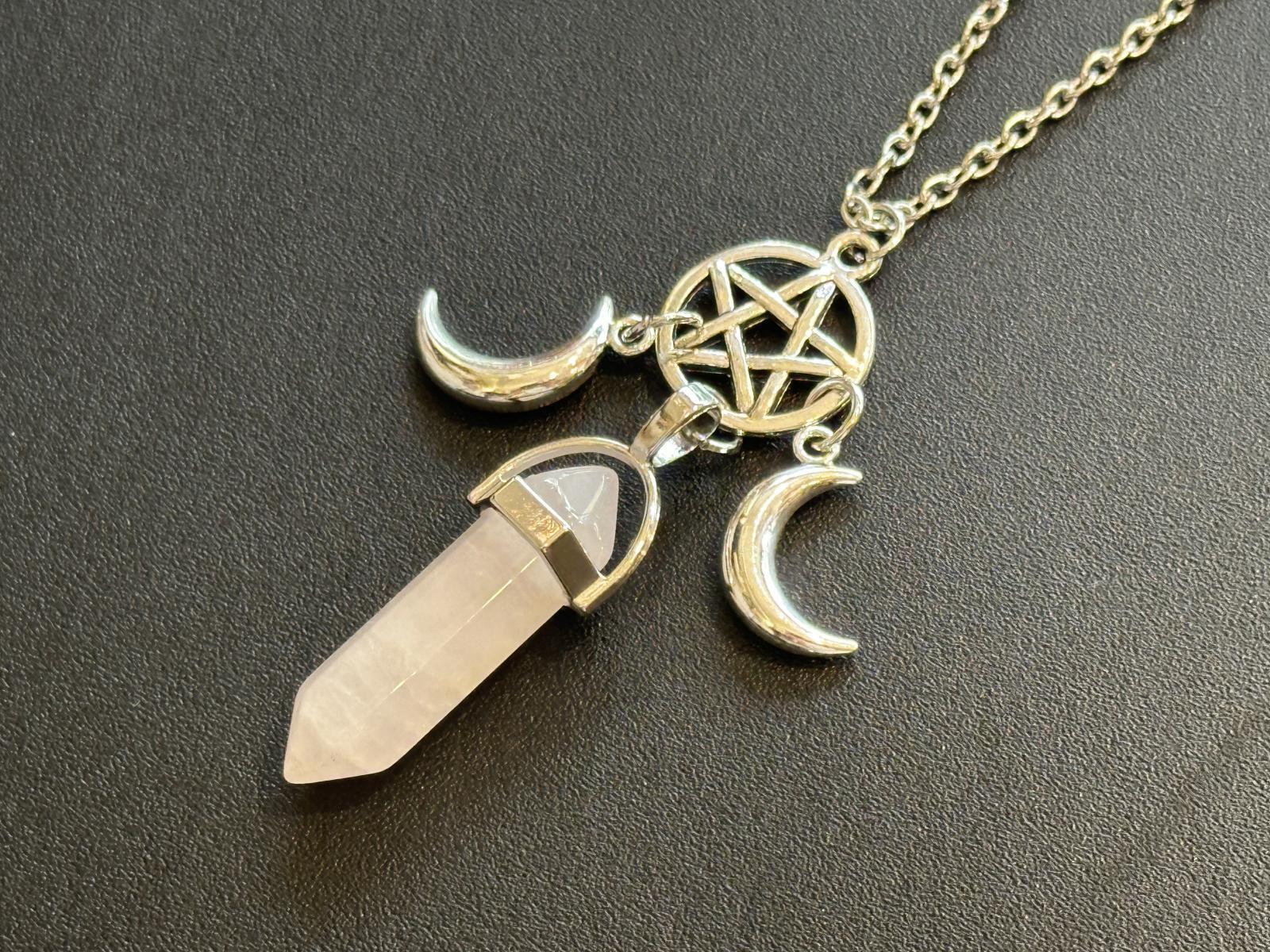 強力な3つのパワーが悩み事の答えを導き出す!三日月&五芒星のペンデュラム・ネックレス愛と美のローズクォーツ [S-367R]
