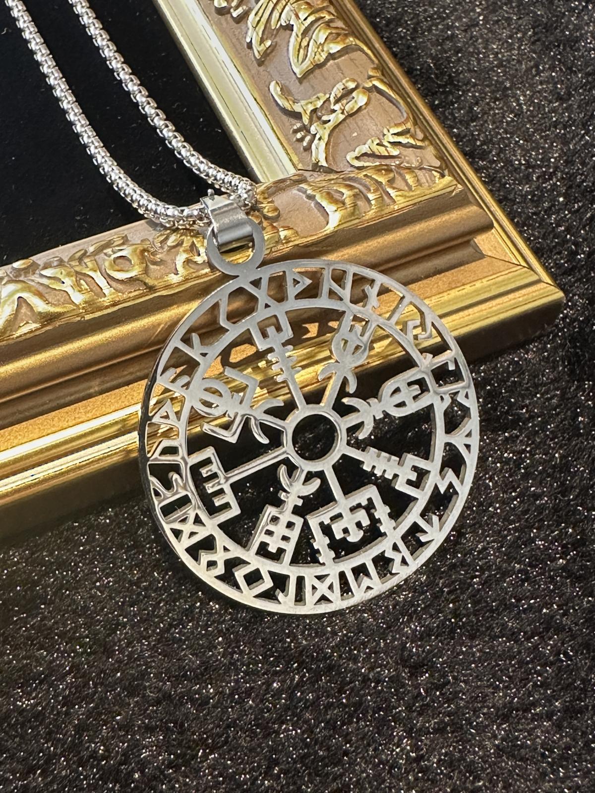 心が迷わないように!進むべき道を示す★ヴァイキングコンパス ペンダント SKELETON 聖なるルーン文字〜Vegvisir〜[Ot-943S]