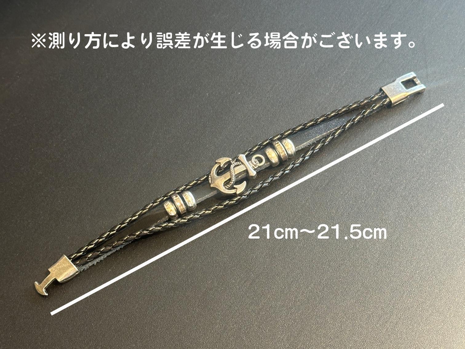 この錨のお守りは ご自身のお守りとしてはもちろん 贈り物としても 最適ではないでしょうか ・サイズ 全長約21〜21.5センチ (測り方により誤差が生じる場合がございます) ※ブレスレットとしての内径約17cm 錨チャーム 約3cm×2.2cm ・レザー、合金
