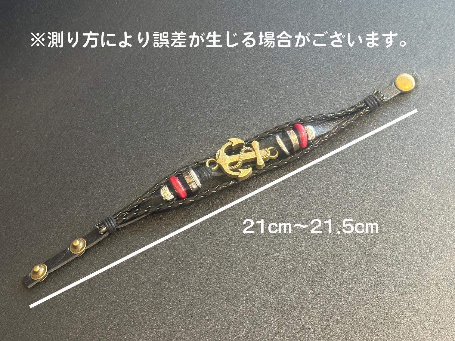 ・内径約17cm この錨のお守りは ご自身のお守りとしてはもちろん 贈り物としても 最適ではないでしょうか ・サイズ 全長約21〜21.5センチ (測り方により誤差が生じる場合がございます) ※ブレスレットとしての内径約17cmと15cm 錨チャーム 約3cm×2.2cm ・レザー、合金